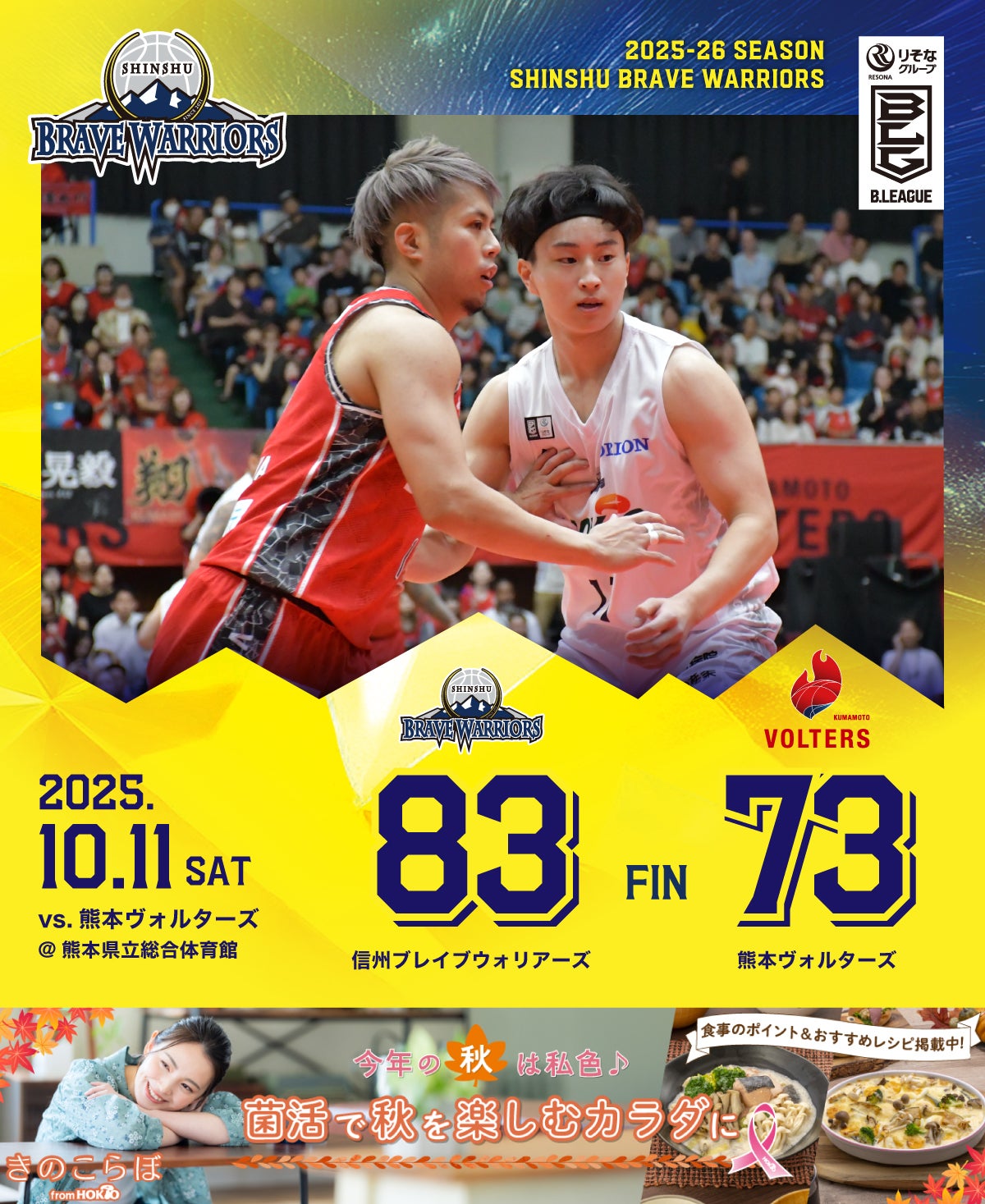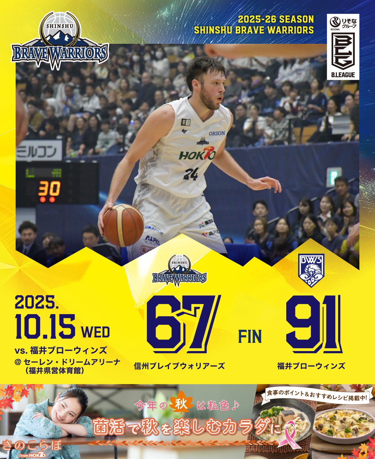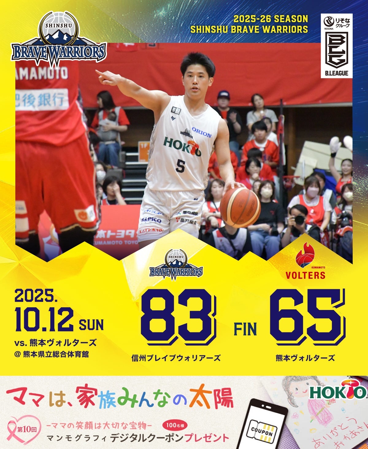 1 | 信州ブレイブウォリアーズ | 4 | 1 | 0.800 | -- |