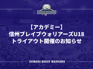 信州ブレイブウォリアーズU18 トライアウト開催のお知らせ