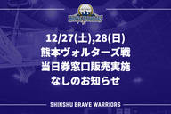 12/27(土),28(日) 熊本ヴォルターズ戦 当日券窓口販売実施なしのお知らせ