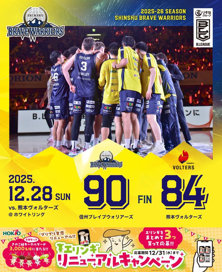 【完売御礼!】12/27(土) 熊本ヴォルターズ戦観戦チケット完売のお知らせ