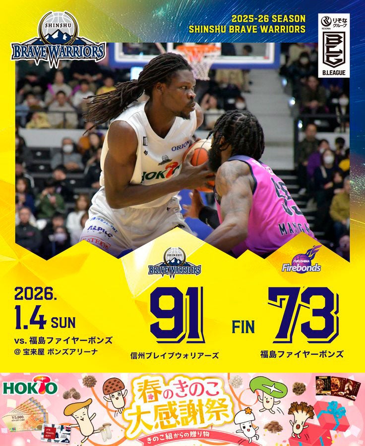| 2 | 信州ブレイブウォリアーズ | 23 | 7 | 0.767 | 1.0 |