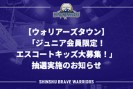 【ウォリアーズタウン】「ジュニア会員限定!エスコートキッズ大募集!」抽選実施のお知らせ