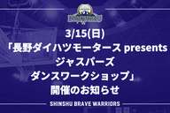 3/15(日)「長野ダイハツモータース presents ジャスパーズ ダンスワークショップ」開催のお知らせ