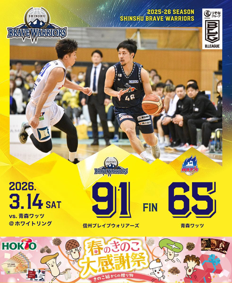 3月14日(土)青森ワッツ戦 八十二長野銀行ブース 抽選会実施決定!