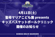 4月11日(土)「聖母マリアこども園 presents キッズバスケットボールクリニック」開催のお知らせ
