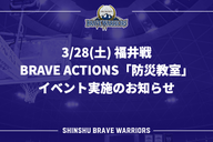 3/28(土) 福井戦 BRAVE ACTIONS「防災教室」イベント実施のお知らせ