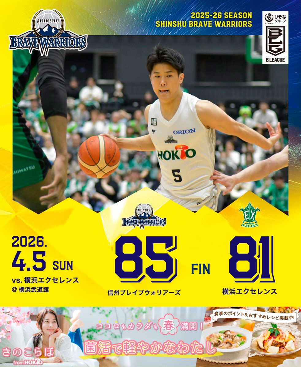 | 1 | 信州ブレイブウォリアーズ | 41 | 13 | 0.759 | -- |