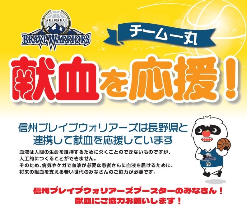 「献血を応援!信州ブレイブウォリアーズ献血啓発イベント」開催