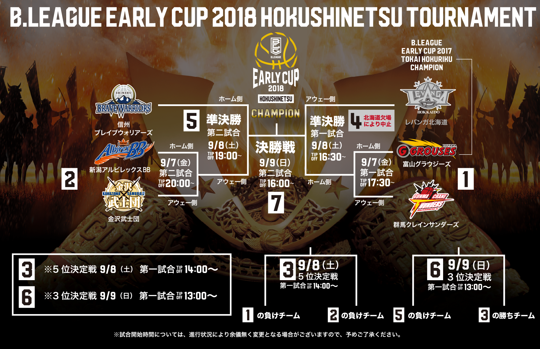 なお、レバンガ北海道が欠場することによって、大会日程は以下の通りに変更となります。