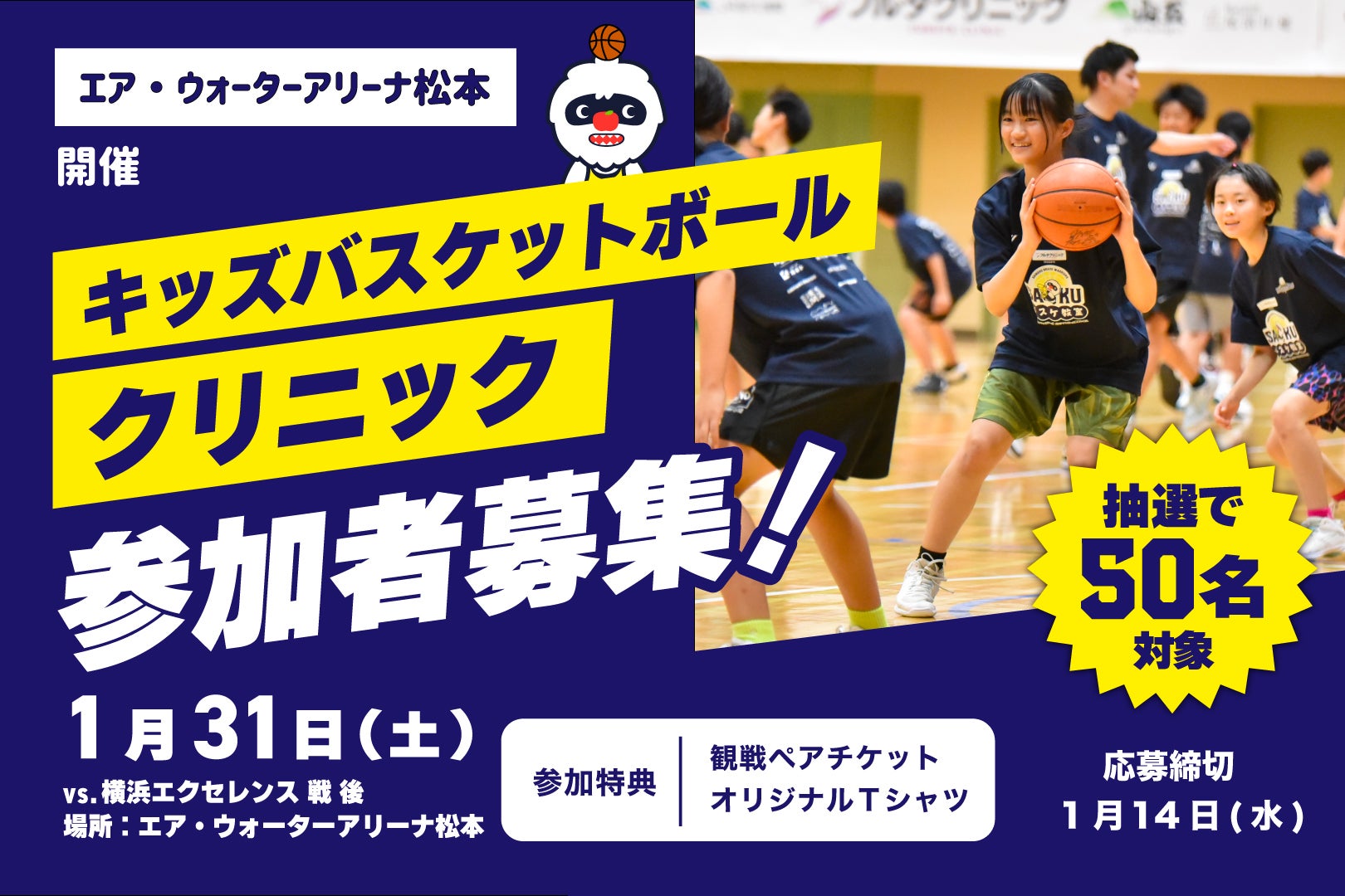 【募集】「キッズバスケットボールクリニック in エア・ウォーターアリーナ松本」開催のお知らせ