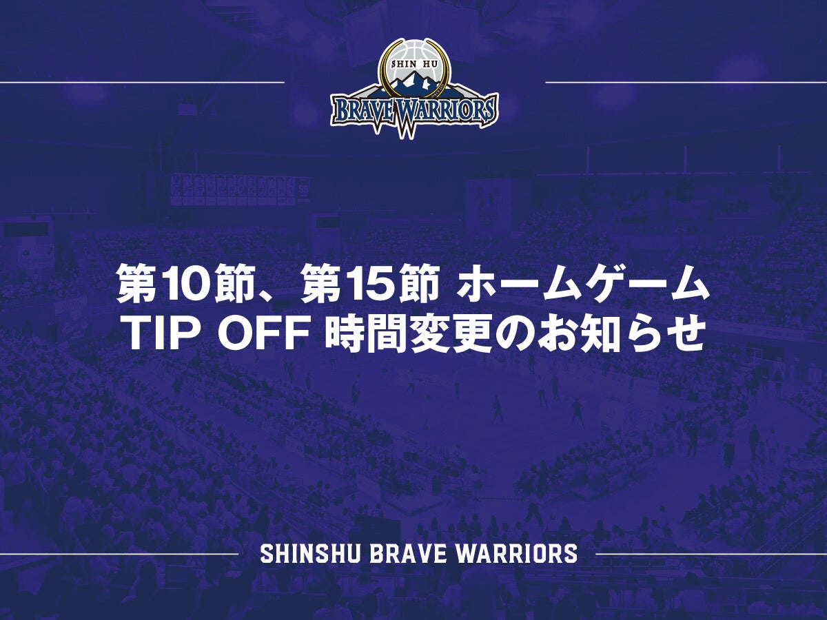 第10節、第15節 ホームゲームTIP OFF時間変更のお知らせ