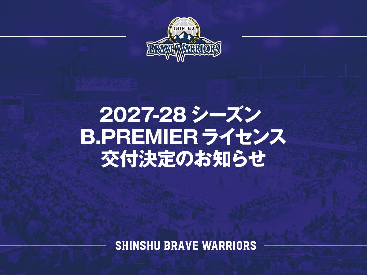 2027-28シーズン B.PREMIER ライセンス交付決定のお知らせ