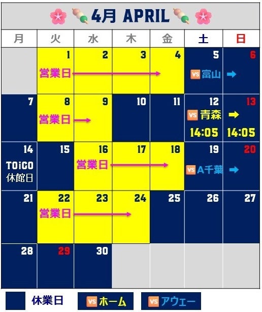 信州ブレイブウォリアーズTOiGOオフィス4月の営業日をお知らせいたします。