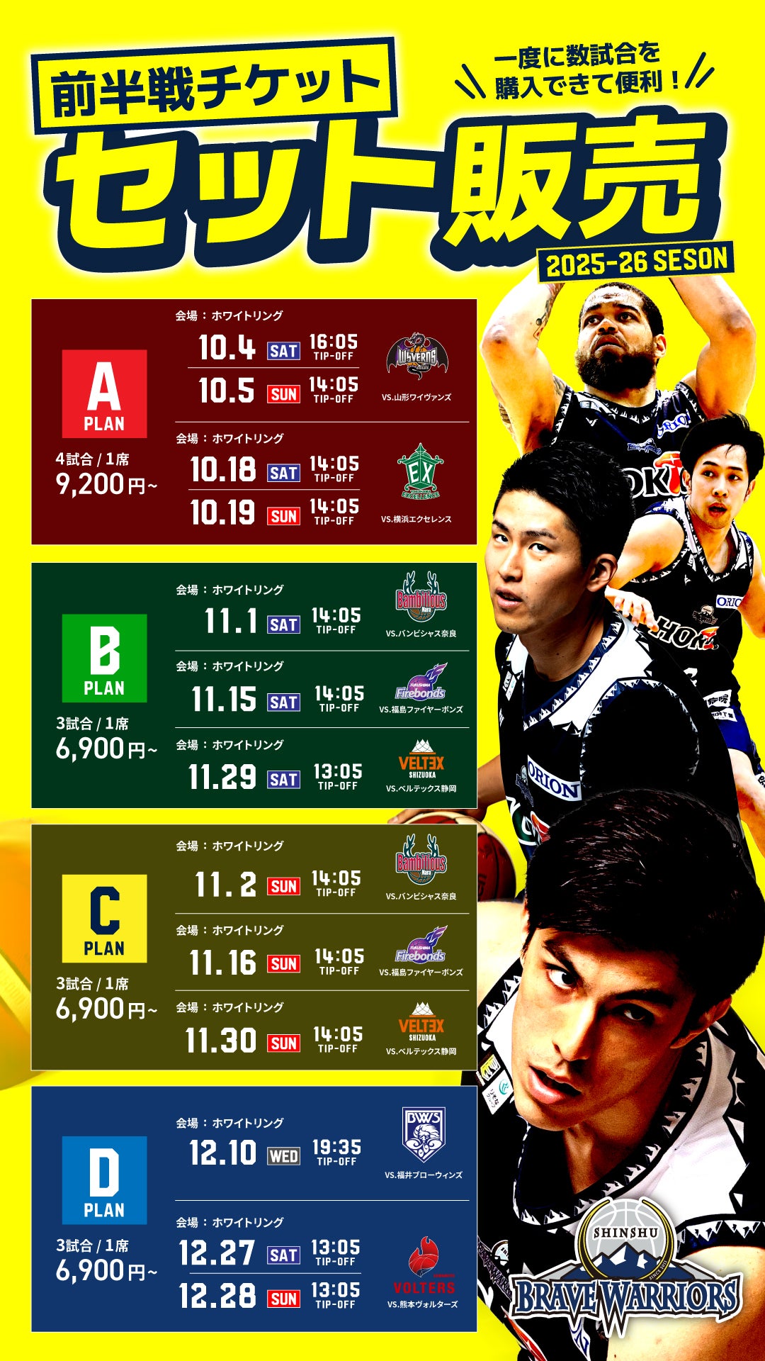 このたび、信州ブレイブウォリアーズでは、複数の試合をまとめて一度に購入できる「セット販売」を実施することとなりましたのでお知らせいたします。