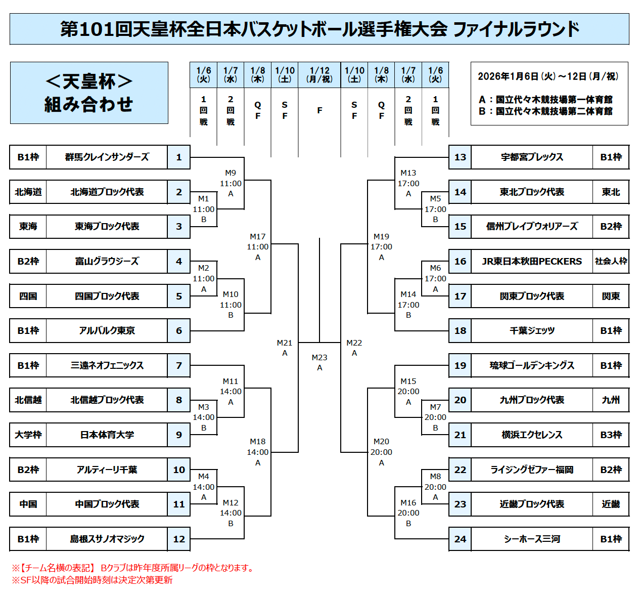 このたび、「第101回天皇杯 全日本バスケットボール選手権大会 ファイナルラウンド」への出場および組み合わせが決定いたしましたのでお知らせいたします。