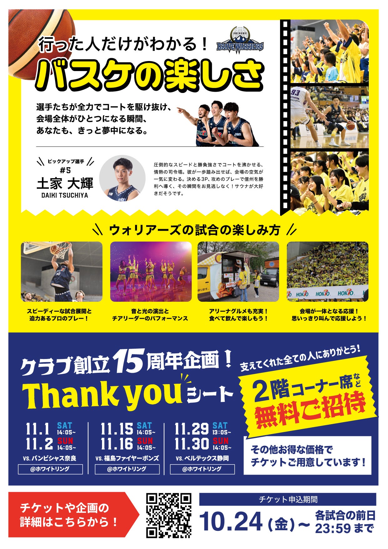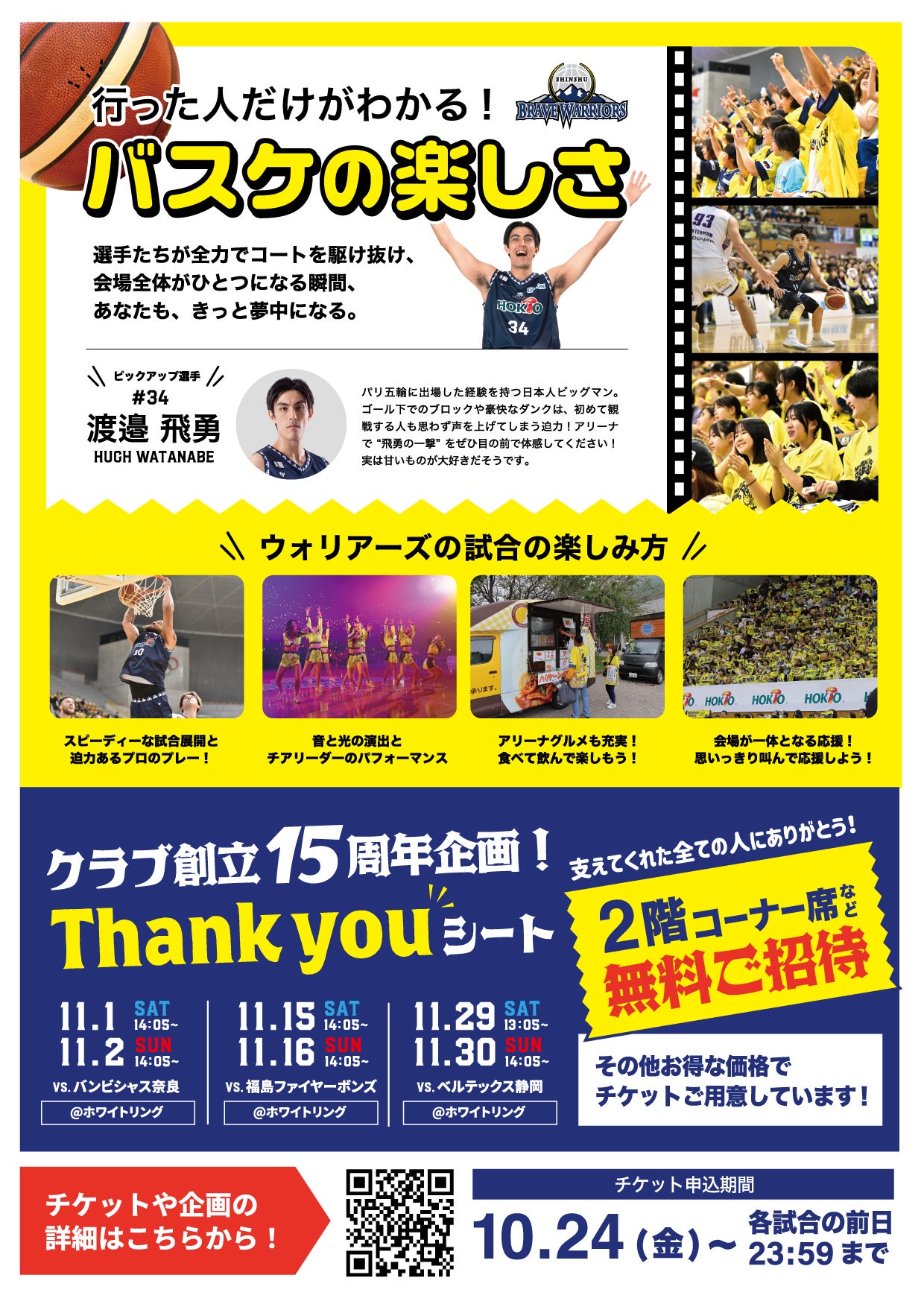 ぜひダウンロードして、ご家族・ご友人など周りの方へご案内いただき、信州ブレイブウォリアーズのホームゲーム会場へともにご来場ください!