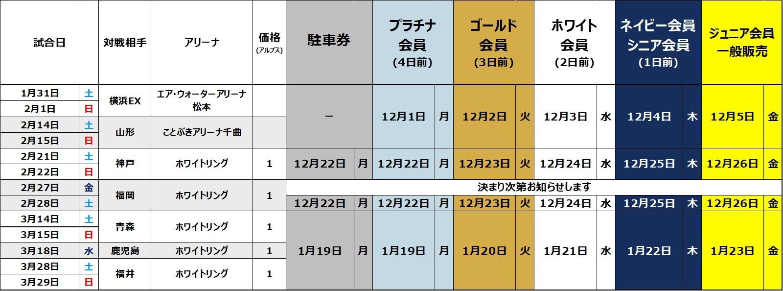 2025-26シーズン 後半戦(第27節まで)ホームゲーム チケット販売スケジュールについてのお知らせ
