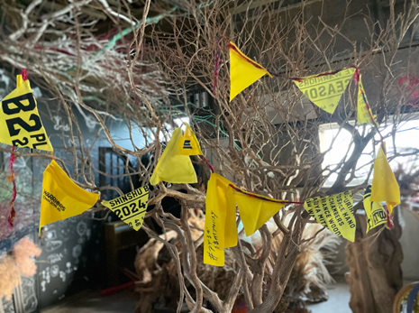 ホワイトリングのある長野市真島は"信州りんご発祥の地"。その誇りある地にちなみ、今シーズンのホームアリーナには、願いを込めた「ふうりんご(りんご型のオーナメントに鈴をつけたもの)」と「フラッグガーランド(クラブのTシャツをフラッグにしたもの)」を飾っていく特別な木のモニュメントが登場します。