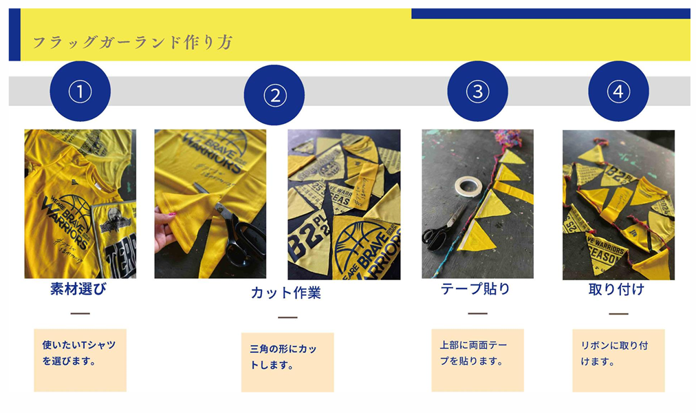 ホームゲーム会場で誰もが参加できる願いを込めた「フラッグガーランド」の制作をおこないます。