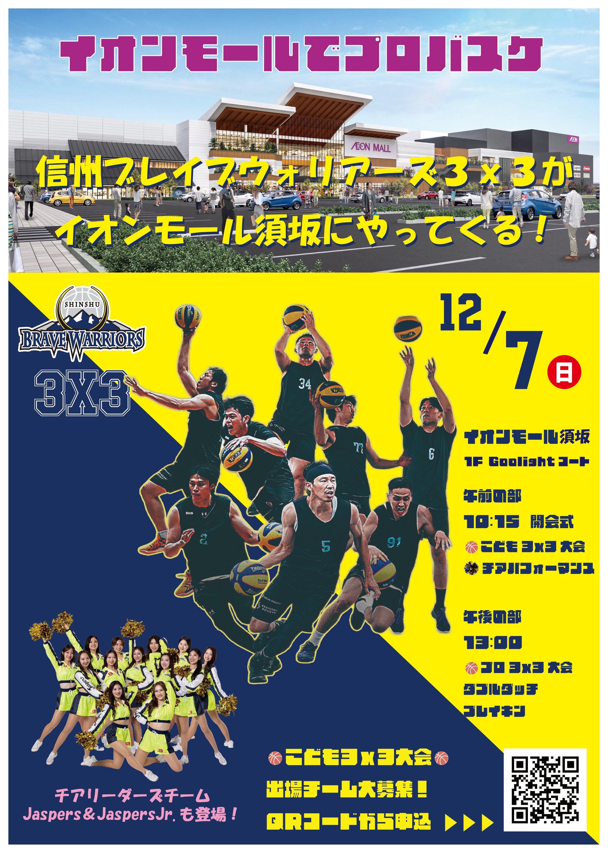 12/7(日)信州ブレイブウォリアーズ 3x3バスケットボール イベント in イオンモール須坂
