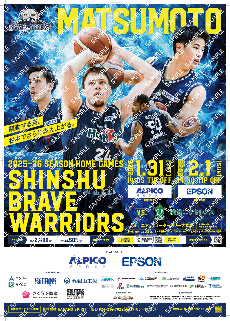 このたび、信州ブレイブウォリアーズでは、2026年1月31日(土)、2月1日(日)に開催する松本ゲームへ向けてより多くの方にご興味を持っていただくため、松本ゲームのポスター掲出にご協力いただける方を募集いたします。