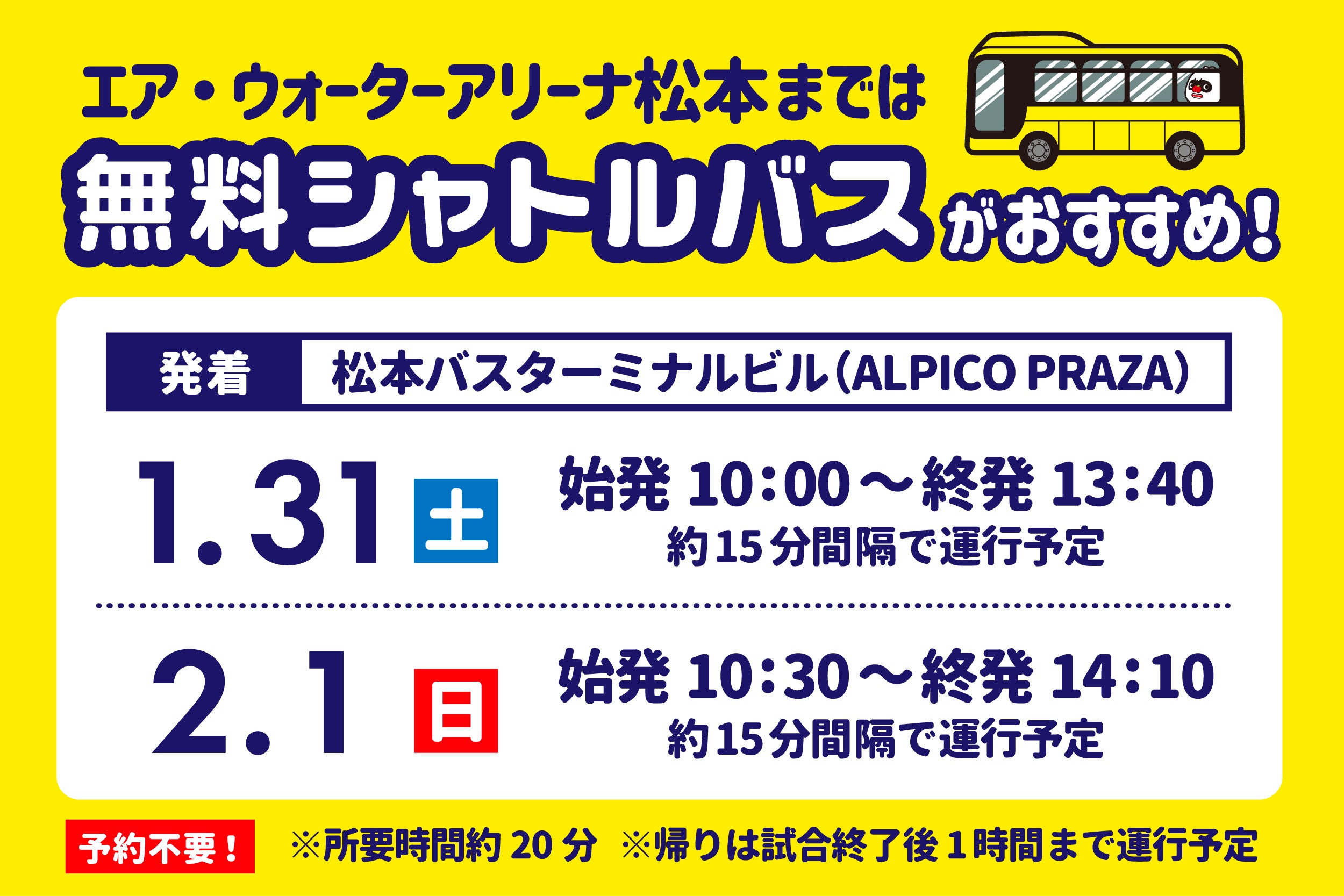 松本市にて開催するホームゲームにおいて、松本駅前からの無料シャトルバスが運行します。
