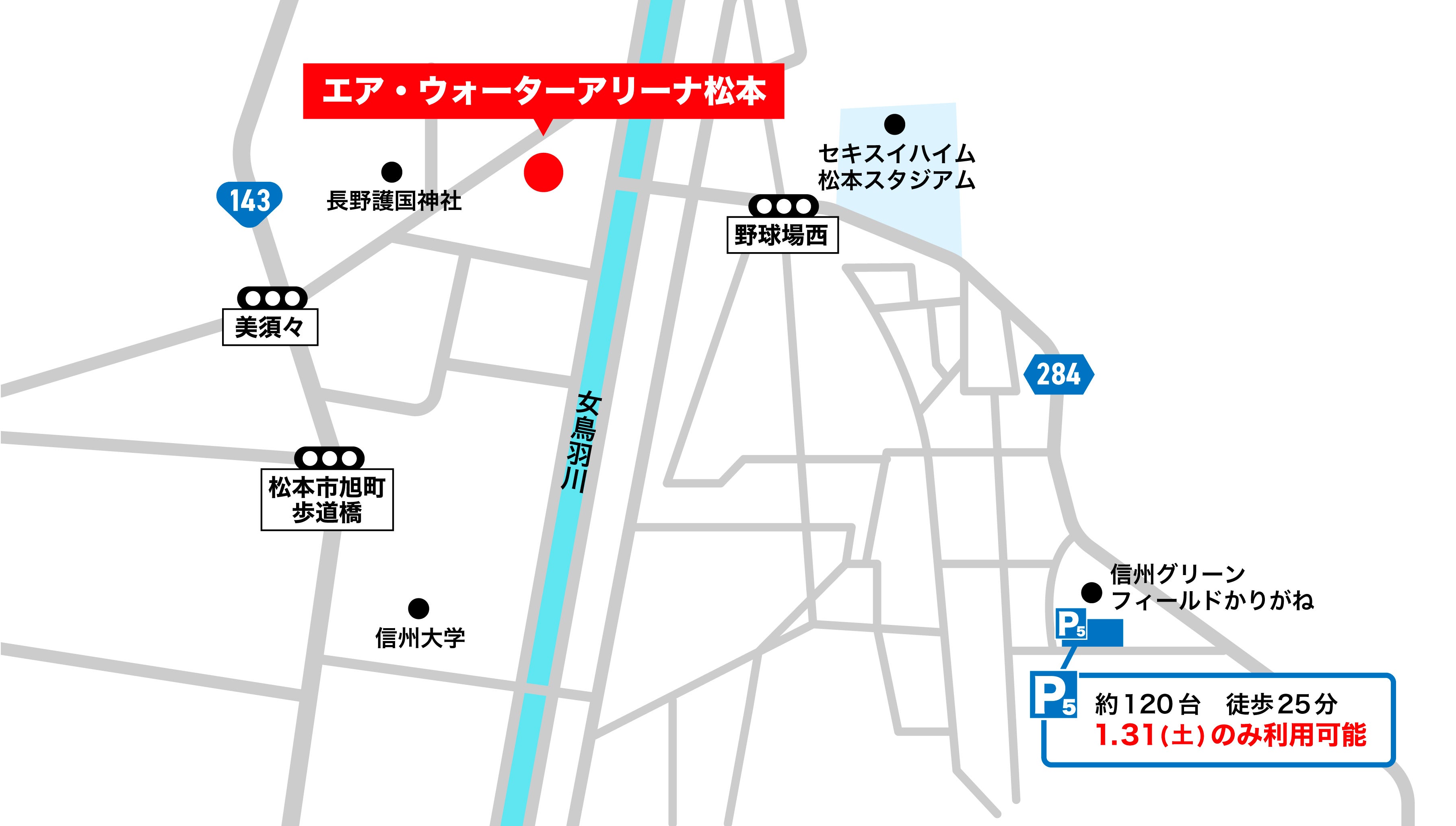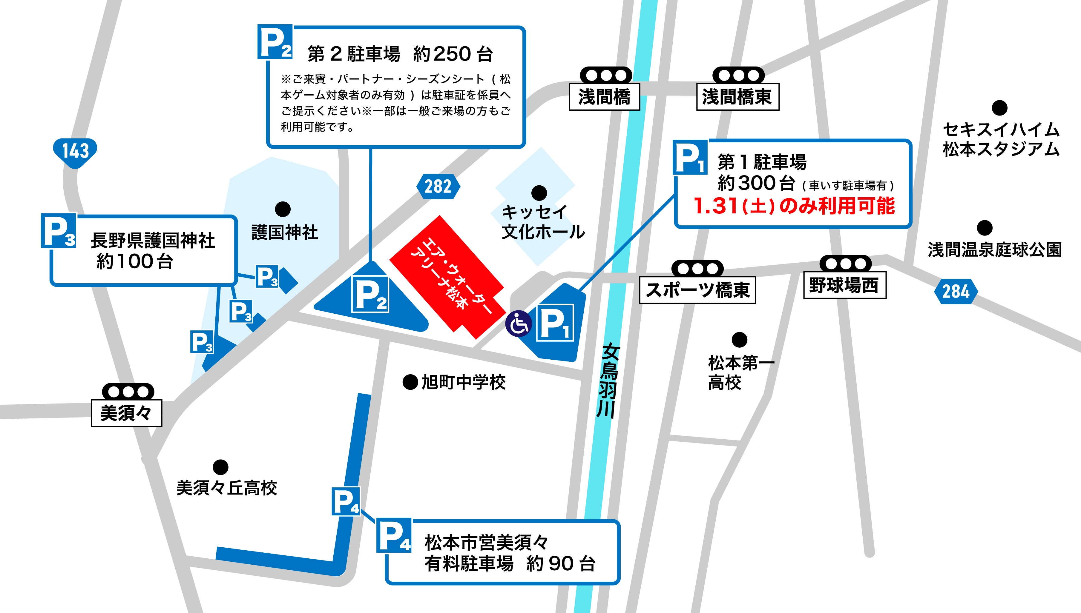 2026年1月31日(土)、2月1日(日)にエア・ウォーターアリーナ松本にて開催する横浜エクセレンス戦の駐車場に関してご案内いたします。