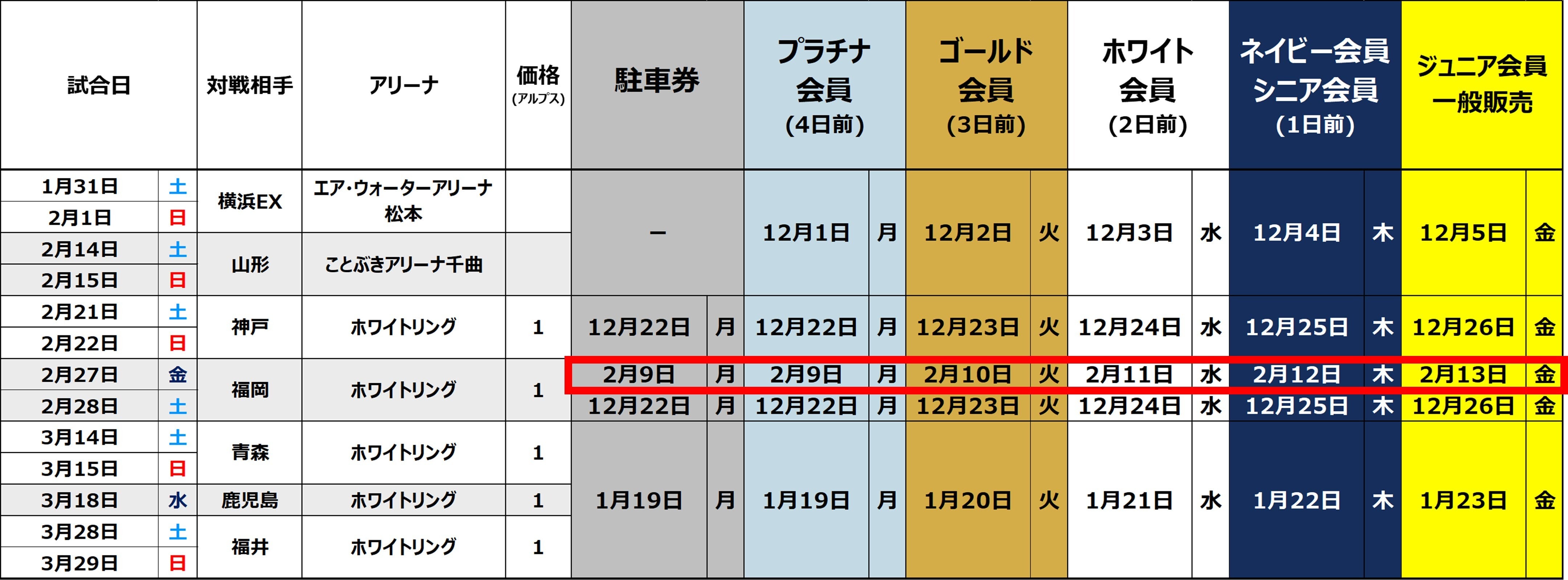 2025-26シーズン チケット販売スケジュール