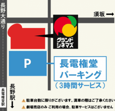 駐車場は長電権堂パーキングをご利用いただけます(3時間無料)。
