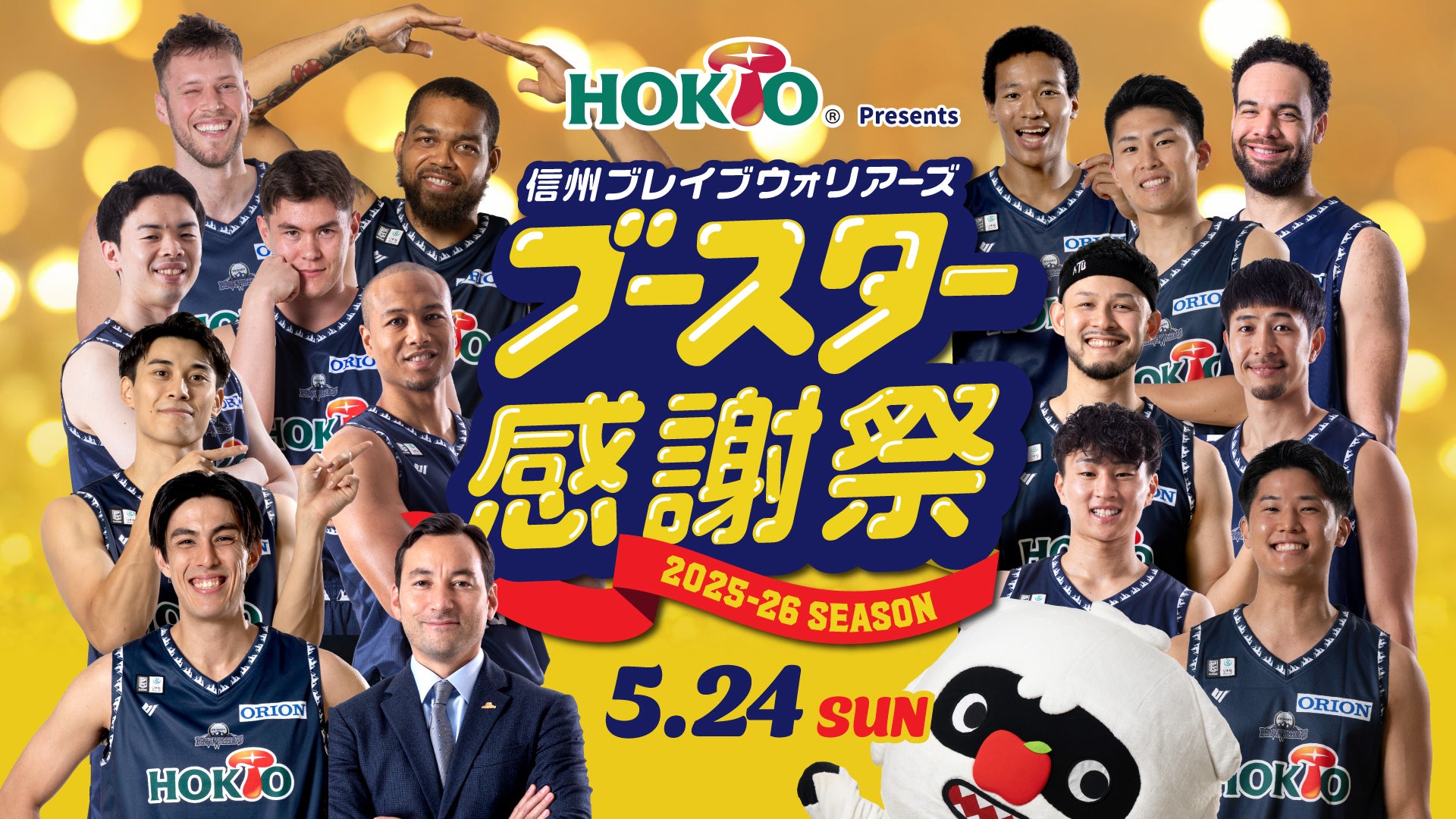このたび、信州ブレイブウォリアーズでは、今シーズンの感謝をブースターの皆さまへお伝えする「ホクト presents 2025-26シーズン ブースター感謝祭」を開催することが決定いたしましたのでお知らせします。