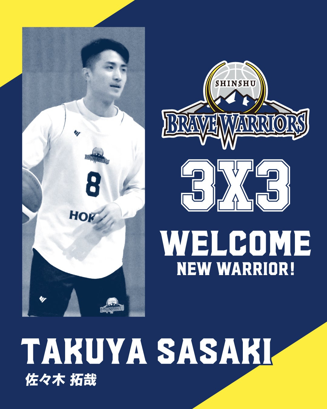 このたび、信州ブレイブウォリアーズ 3x3では、佐々木拓哉選手と2026-27シーズンにおける選⼿契約(新規)が決定いたしましたのでお知らせいたします。