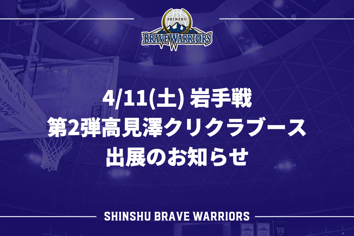 4/11(土) 岩手戦 第2弾高見澤クリクラブース出展のお知らせ